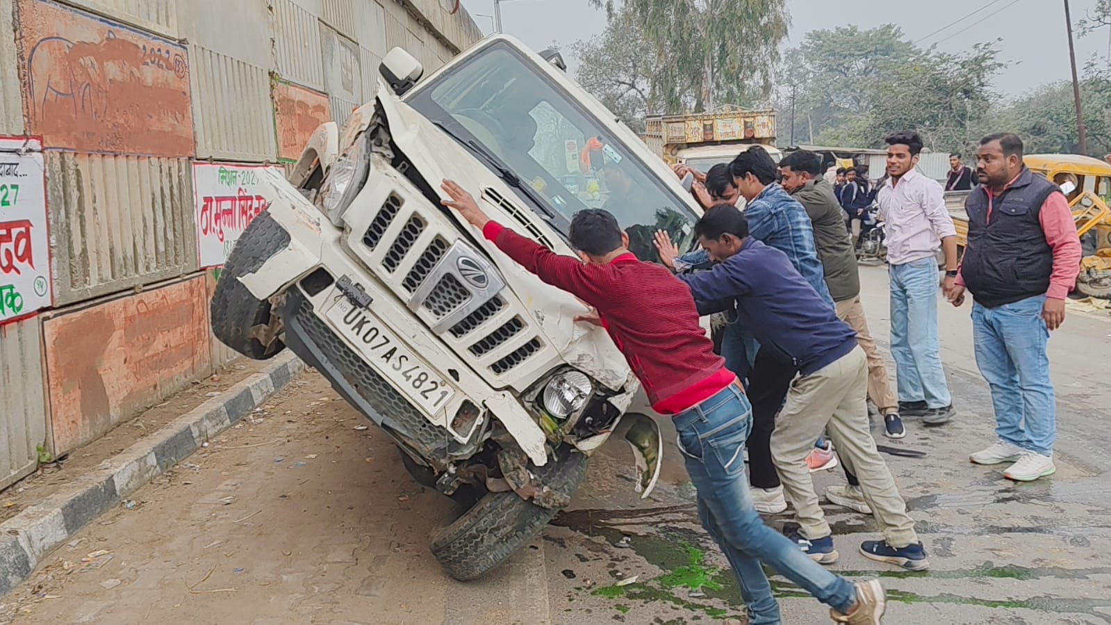 राष्ट्रीय राजमार्ग पर स्कॉर्पियो और टैंपो की भिड़ंत, टैंपो चालक गंभीर रूप से घायल