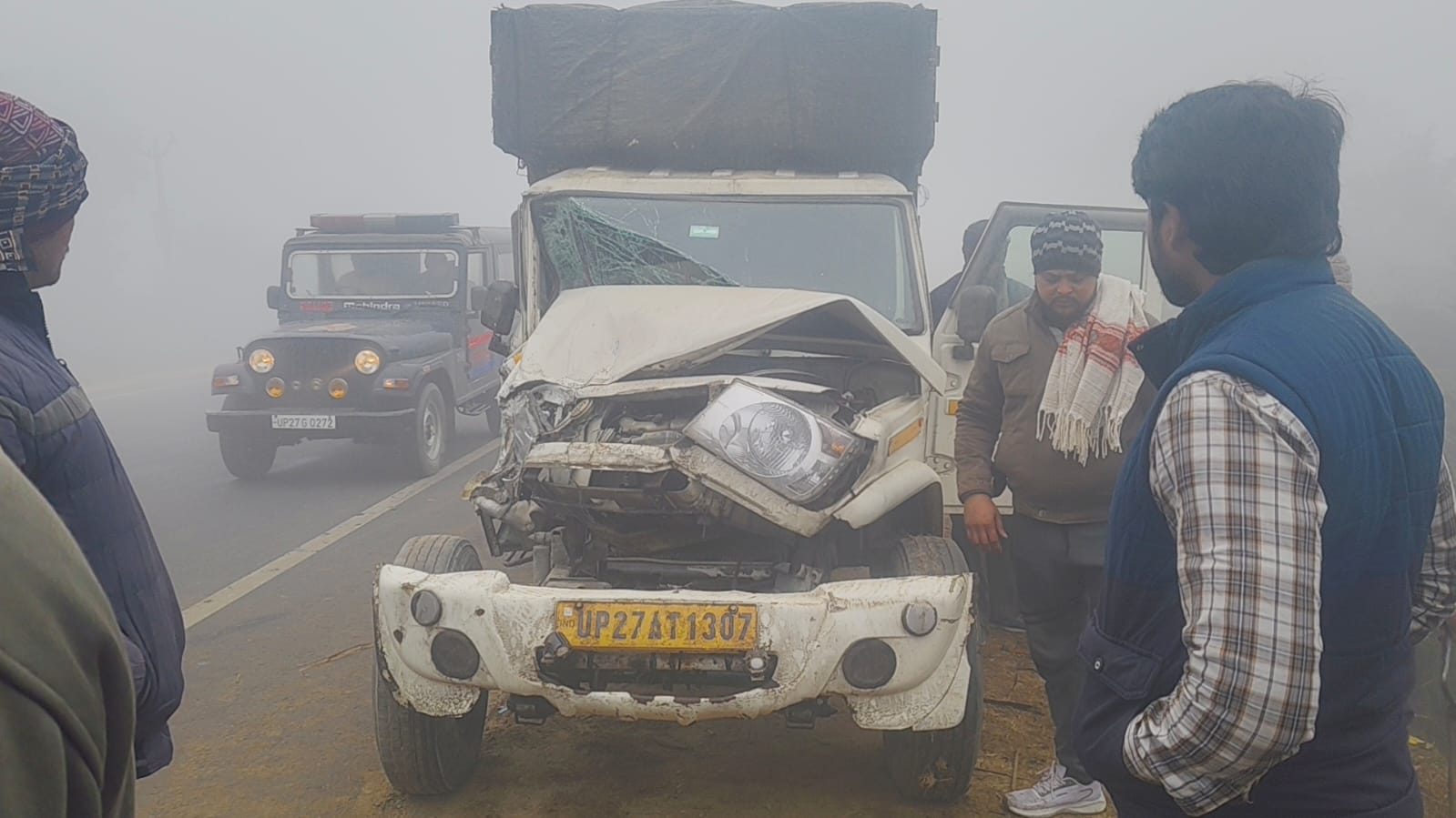 खैरपुर चौराहे के समीप घने कोहरे में पिकअप-डंपर की भिड़ंत, चालक गंभीर घायल