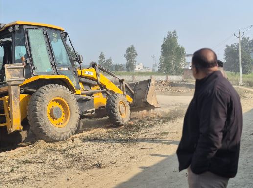 अवैध प्लाटिंग पर गरजा प्राधिकरण का जेसीबी, लगभग पच्चीस हजार वर्गमीटर भूमि पर प्रस्तावित कालोनी की दीवार ध्वस्त
