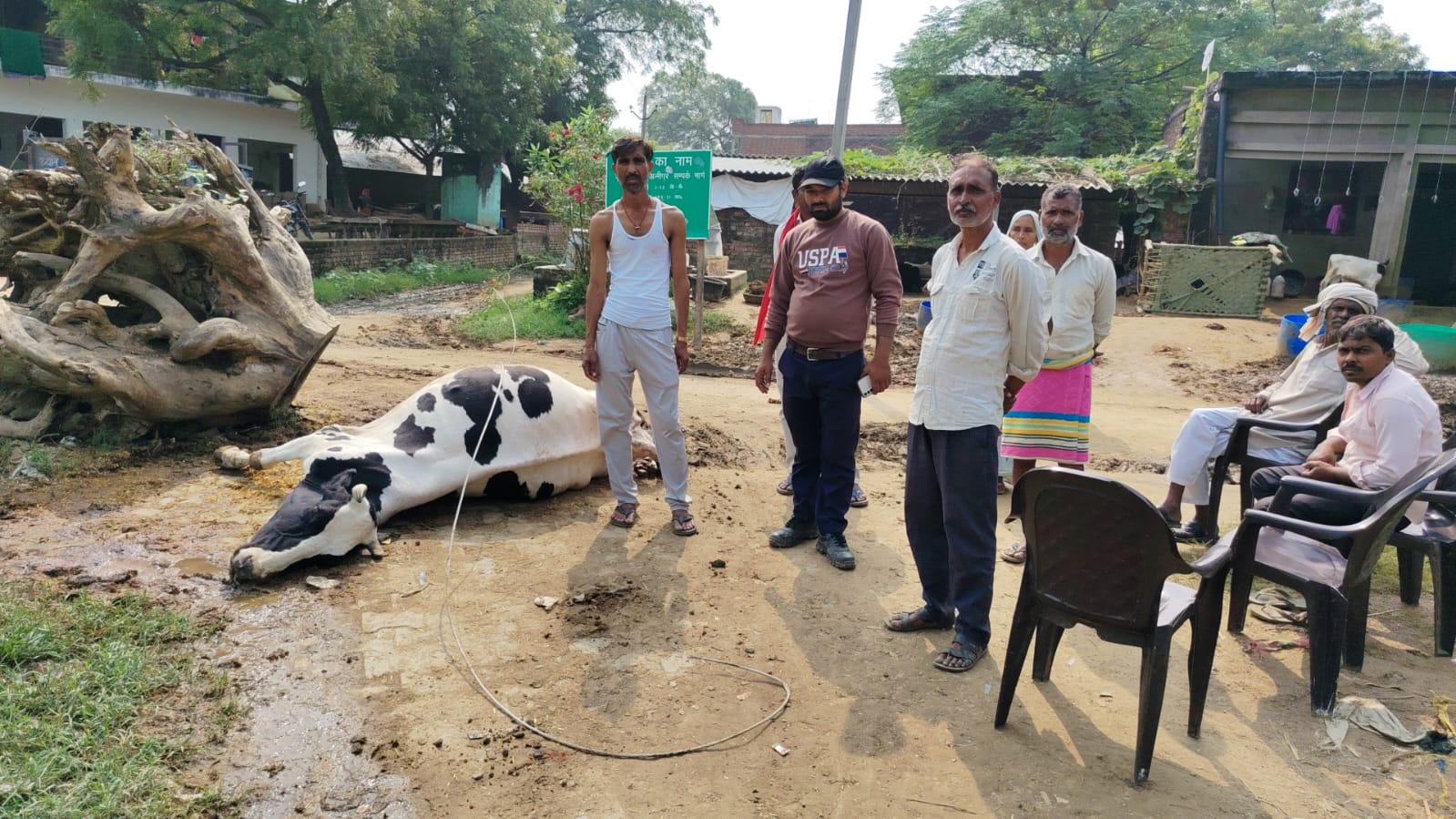 कुकापुर गांव में हाई टेंशन लाइन का तार टूटने से गाय की मौत