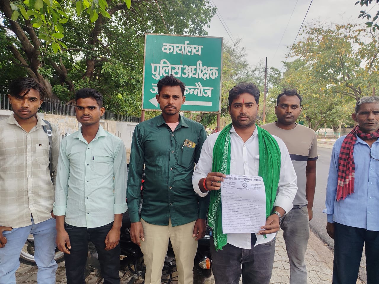 कन्नौज, उत्तर प्रदेश। भारतीय किसान यूनियन (स्वराज) के जिला अध्यक्ष पुष्पेंद्र सिंह राठौड़ अपने समर्थकों के साथ पुलिस अधीक्षक कार्यालय पहुंचे और कार्रवाई न होने पर नाराजगी जताते हुए एसपी ऑफिस का गेट खटखटाया।