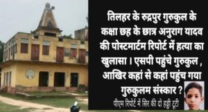 तिलहर, शाहजहांपुर: क्या शिक्षा के मंदिर में अब बच्चों की लाशें मिलेंगी? जनपद के रुद्रपुर गांव स्थित गुरुकुल महाविद्यालय में उस वक्त सनसनी फैल गई जब कक्षा 7 में पढ़ने वाले छात्र अनुराग का शव खून से लथपथ हालत में पाया गया। अस्पताल ले जाने पर डॉक्टरों ने उसे मृत घोषित कर दिया।