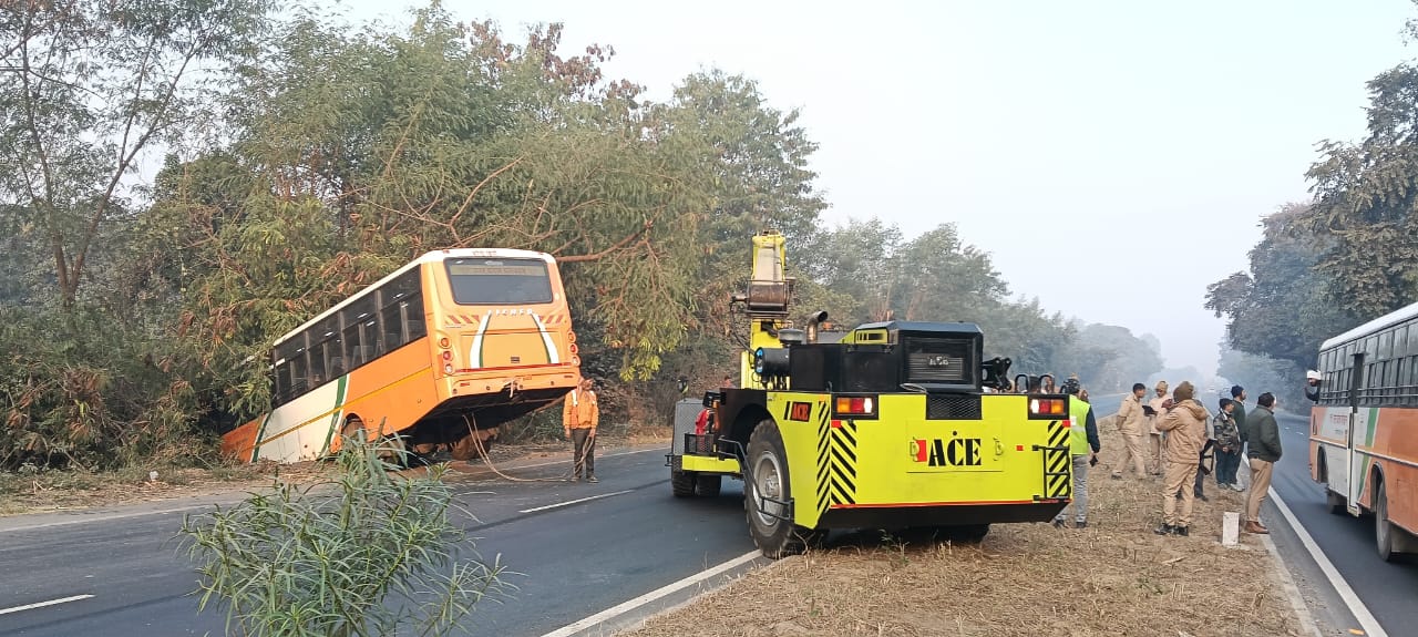 तिलहर में बस हादसा: एसपी ग्रामीण और सीओ ने घटनास्थल का किया निरीक्षण