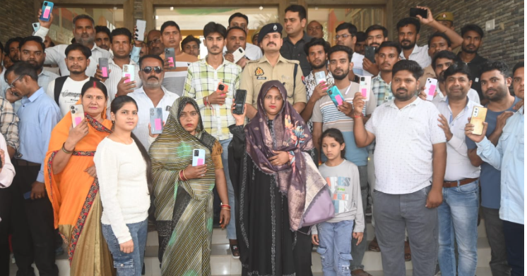 औरैया सर्विलांस सेल व साइबर पुलिस द्वारा खोये हुए 15 लाख रुपए के मोबाइल धारकों को सौंपे