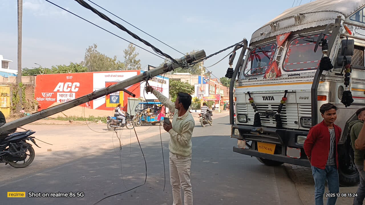 ट्रक की टक्कर से बिजली का पोल ध्वस्त, यातायात हुआ प्रभावित, पुलिस व विद्युत विभाग में मची खलबली