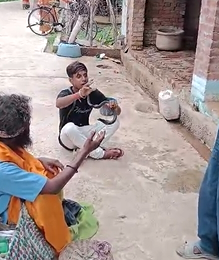नाग को गले में डालकर रील बना रहे युवक को सांप ने डसा भर्ती