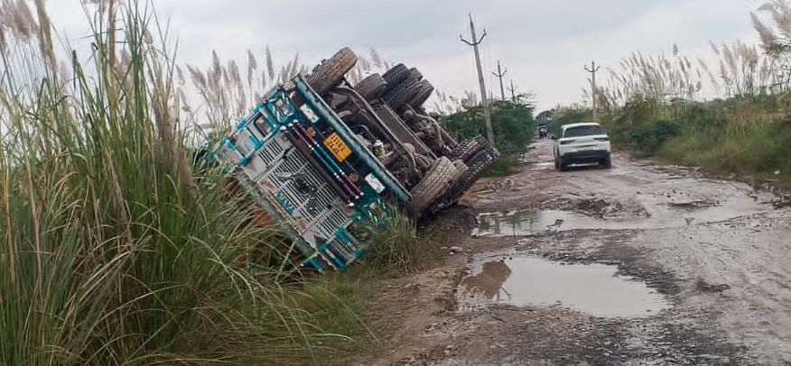 अनियंत्रित होकर ट्रक पलटा चालक ने कूद कर बचाई जान