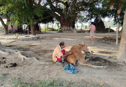 आकाशीय बिजली गिरने से गाय घायल, दिलावरपुर आश्रम के बाबाजी कुलदीप कुमार त्रिपाठी कर रहे देखभाल, प्रशासन से मदद की गुहार