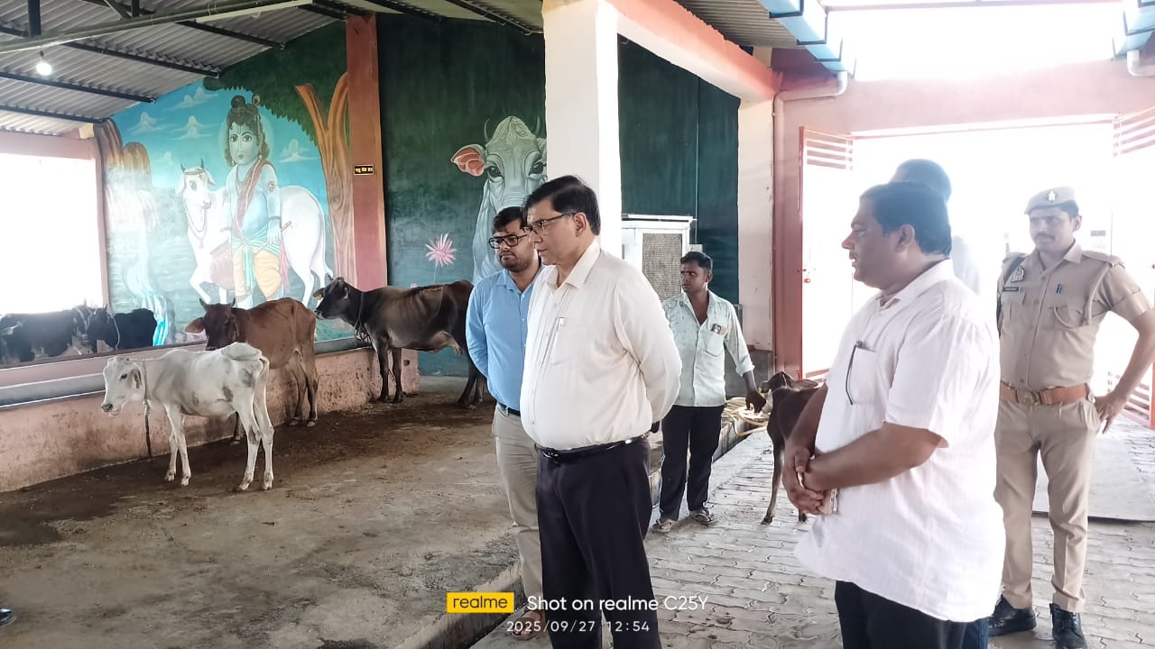 जिलाधिकारी ने निर्माणाधीन हरसिंहपुर गौशाला का किया औचक निरीक्षण।