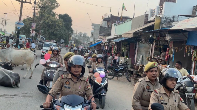 तिलहर में महिला पुलिस ने नारी सुरक्षा और स्वावलंबन का संदेश फैलाया, महिला पुलिस अधिकारी/कर्मचारियों ने भव्य बाइक रैली निकाली