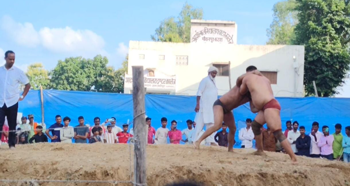 मीरानपुर कटरा के श्रीराम लीला मेला में शानदार दंगल प्रतियोगिता में दिखा पहलवानों का दमखम