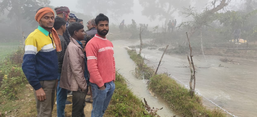 फीलनगर गांव के पास शारदा नहर में हुए अचानक कटाव से खेतों में भरा पानी, बड़े पैमाने पर गेहूं की फसलें जलमग्न