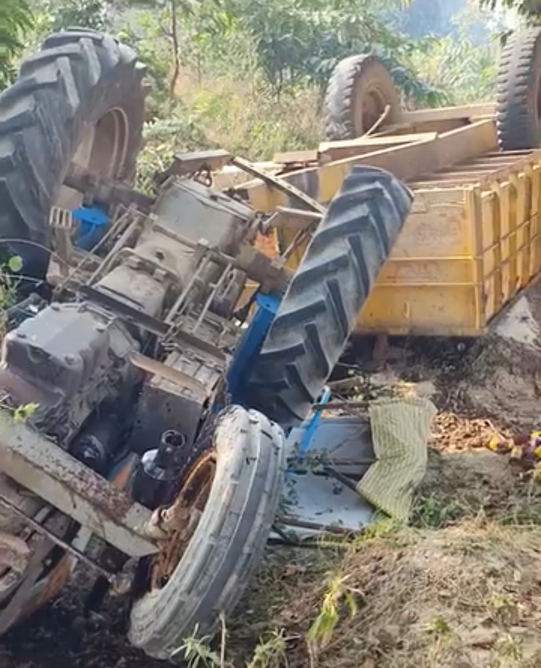 तिलहर–निगोही मार्ग पर ट्रैक्टर-ट्रॉली पलटी, बाइक सवार को बचाने में हुआ हादसा