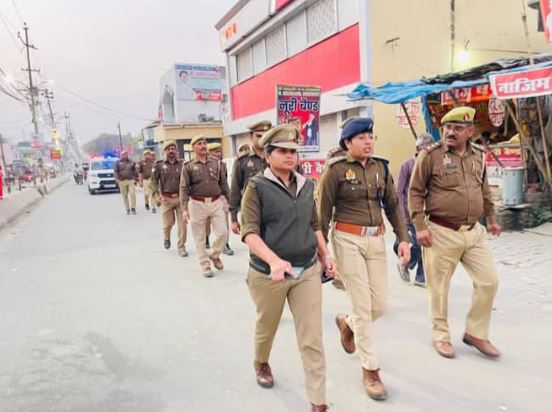तिलहर में क्षेत्राधिकारी ने पुलिस बल के साथ किया पैदल गश्त, सुरक्षा व्यवस्था का लिया जायजा