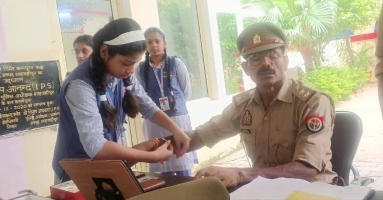छात्राओं ने थाना प्रभारी निरीक्षक जुगल किशोर पाल को राखी बांधकर अपने भाई का प्रेम और विश्वास व्यक्त किया