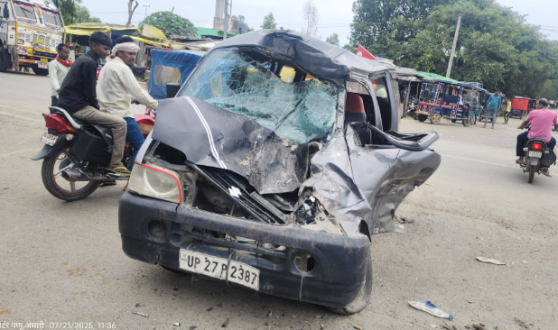BREAKING NEWS: खैरपुर चौराहे पर घटियाघाट दर्शन को जा रहे श्रद्धालुओं की इको कार को ट्रक ने मारी टक्कर, पांच श्रद्धालू गंभीर घायल