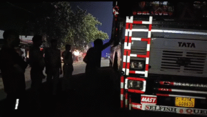 नशे में धुत कंटेनर चालक ने बीच चौराहे पर खड़ी कर दी गाड़ी, लालगंज में मचा हड़कंप