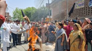 छिबरामऊ में नारी शक्ति का उग्र प्रदर्शन, राहुल गांधी व अखिलेश यादव का फूंका पुतला