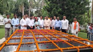 पूर्व विधायक राजेश यादव के नेतृत्व में दी गई पुष्पांजलि