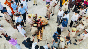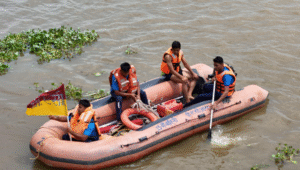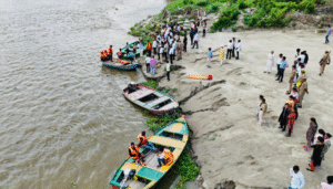 बाढ़ से बचाव हेतु जिसमें एक नाव, जो कि ग्रामीणों को लेकर आ रही थी उसी नाव से अचानक एक ग्रामीण नदी में गिर गया, डूबने लगा, बचाव दल/पीएसी टीम द्वारा तत्काल कार्यवाही करते हुए मोटर बोट की सहायता से उक्त व्यक्ति को नदी से बाहर निकाला गया