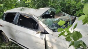राष्ट्रीय राजमार्ग पर बड़ा हादसा: चलती कार का टायर फटा, खाई में पलटी चार घायल, एक की हालत गंभीर