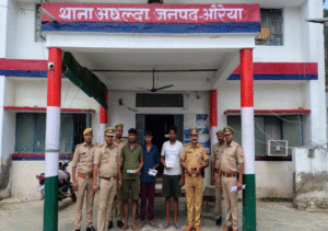 अपर पुलिस महानिदेशक कानपुर आलोक सिंह द्वारा अपराध एवं अपराधियो पर नियंत्रण हेतु चलाये जा रहे अभियान के क्रम में पुलिस उपमहानिरीक्षक कानपुर परिक्षेत्र हरीश चन्दर के निर्देशन व पुलिस अधीक्षक अभिषेक भारती के पर्यवेक्षण में व अपर पुलिस अधीक्षक आलोक मिश्र के निर्देशन में व क्षेत्राधिकारी प्रथुयशश्य पुनीत मिश्रा के कुशल पर्यवेक्षण में शुक्रवार को थाना अछल्दा पुलिस टीम द्वारा तीन शातिर चोर- अमित कुमार उर्फ प्रशांत, ईशू व विवेक कुमार को गिरफ्तार किया गया