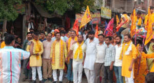 शोभा यात्रा कस्बा स्थित काली माता मंदिर से शुरू होकर नगर में होते हुए कस्बा अजीतमल में सैकड़ो की संख्या में भक्तों ने पूरे नगर में भ्रमण किया।